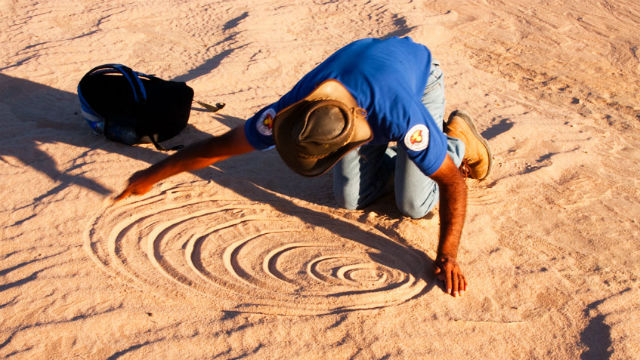 Graham Clarke of Harry Nanya Tours demonstrates Indigenous art motifs